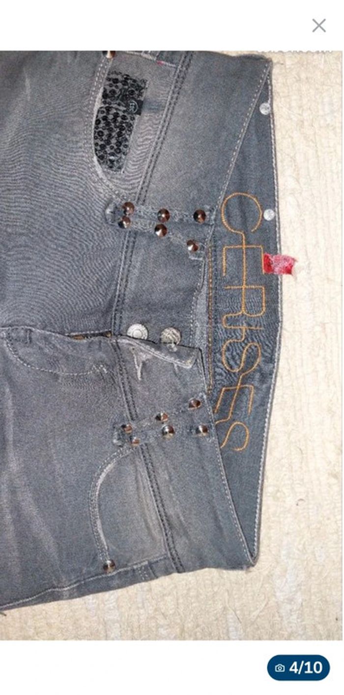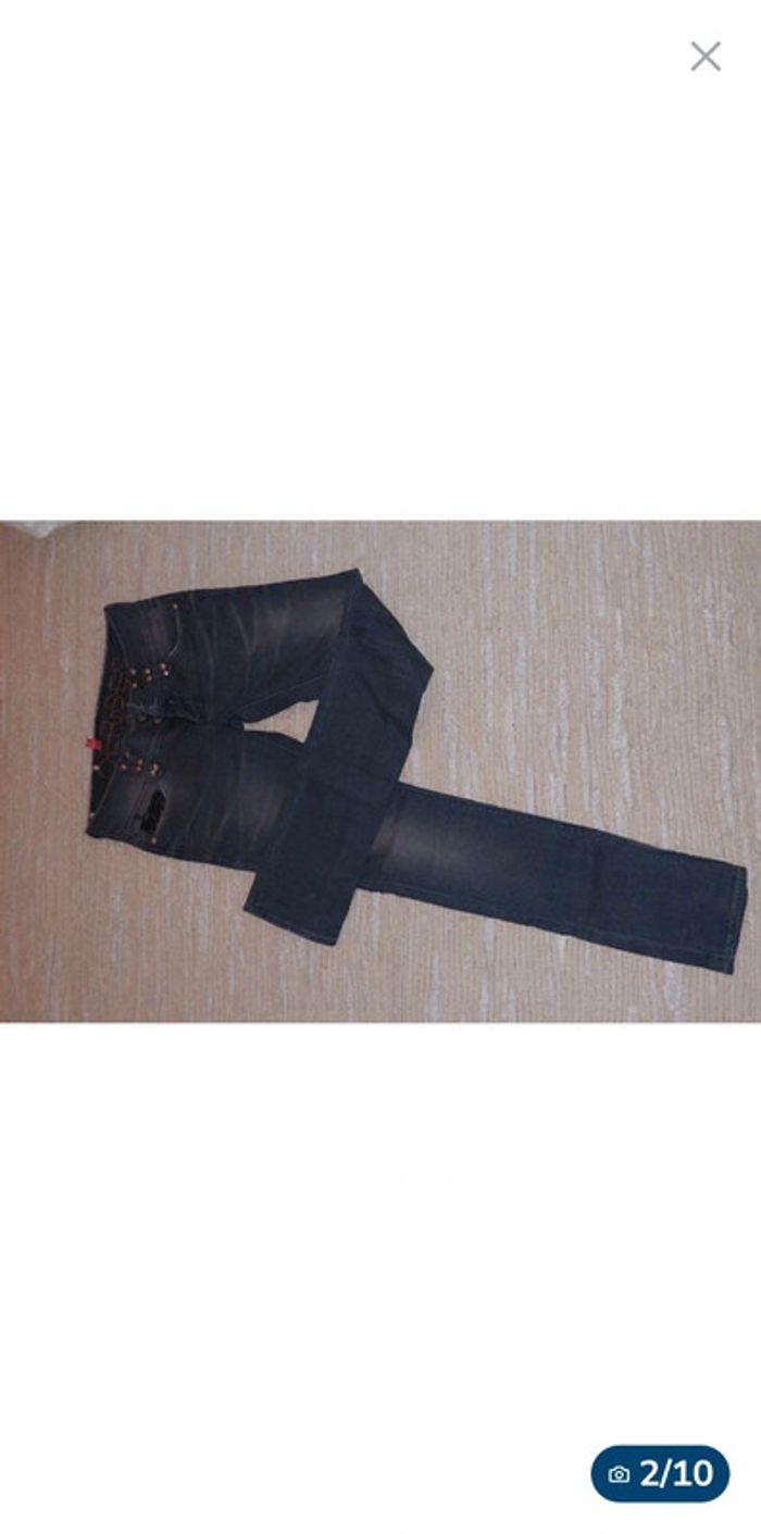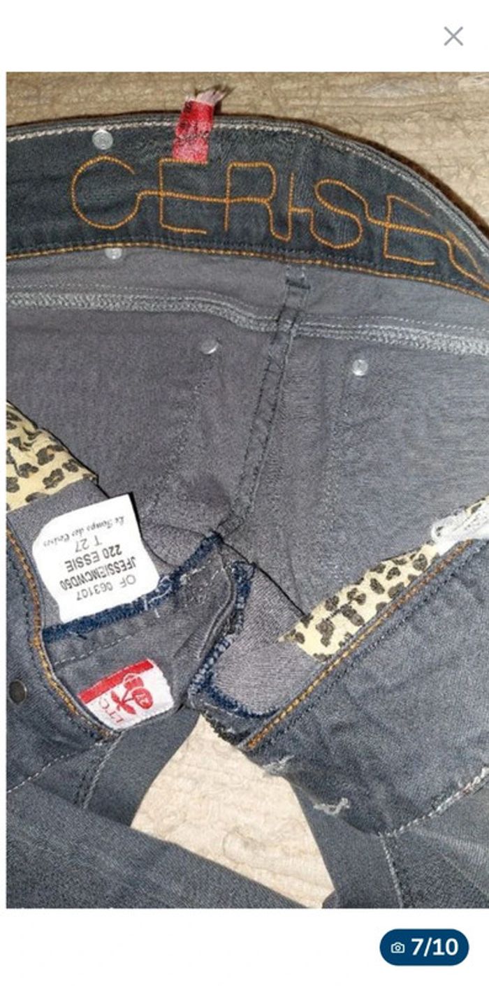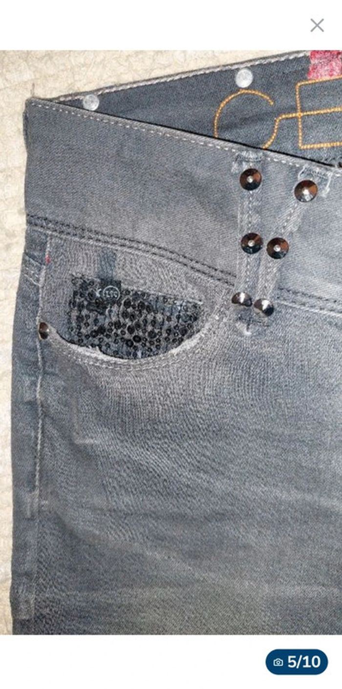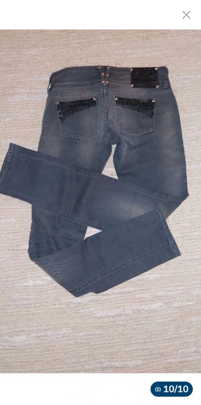 Superbe pantalon jeans de marque Le temps des Cerises taille US 27, taille française 36-38. Gris foncé avec sequins noirs. Très bon état.