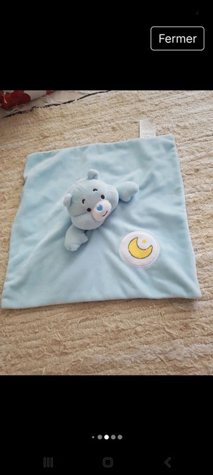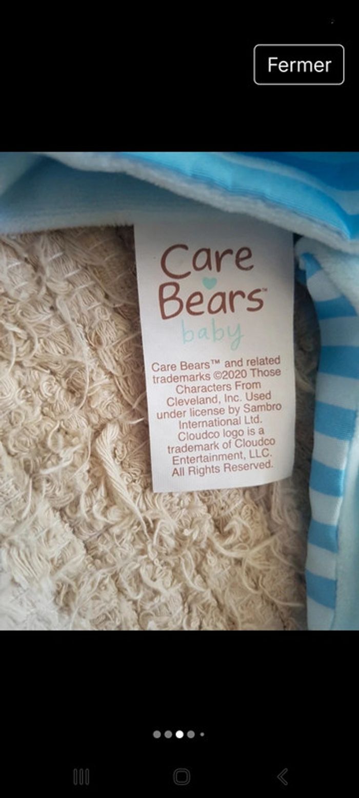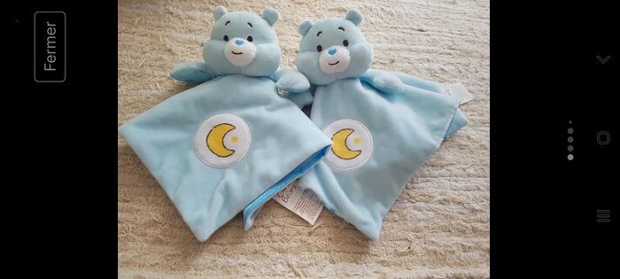 Lot de 2 doudous plats carré abec grelots ours ourson bleu clair de marque Care Bears baby