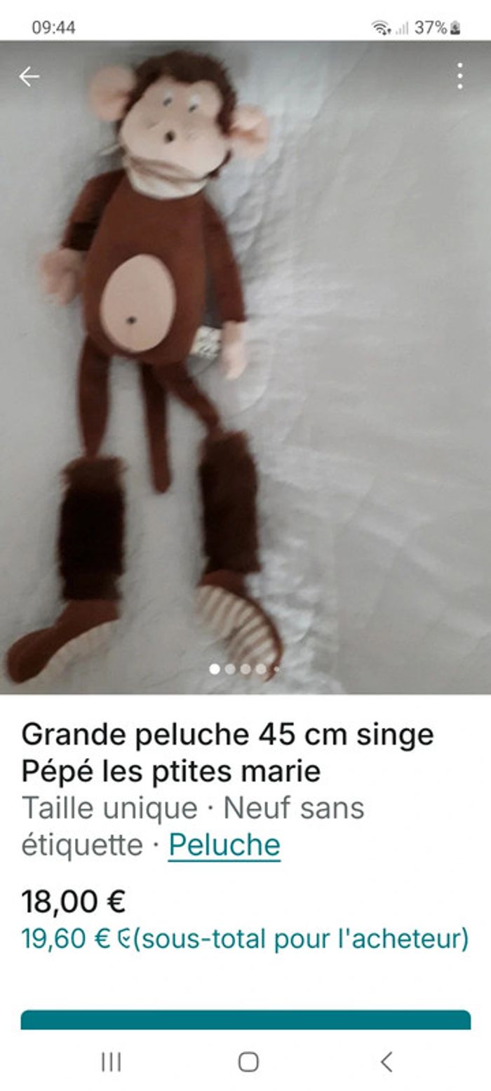 Grande peluche doudou singe chimpanzé Pépé de marque les ptites marie excellent état 45cm