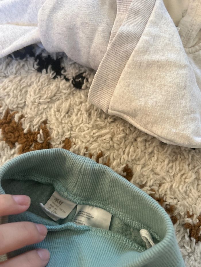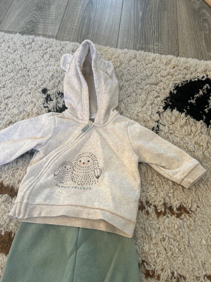 Ensemble veste + pantalon bébé. Couleur beige et vert d’eau Taille 2/4mois Marque H&M Parfait état