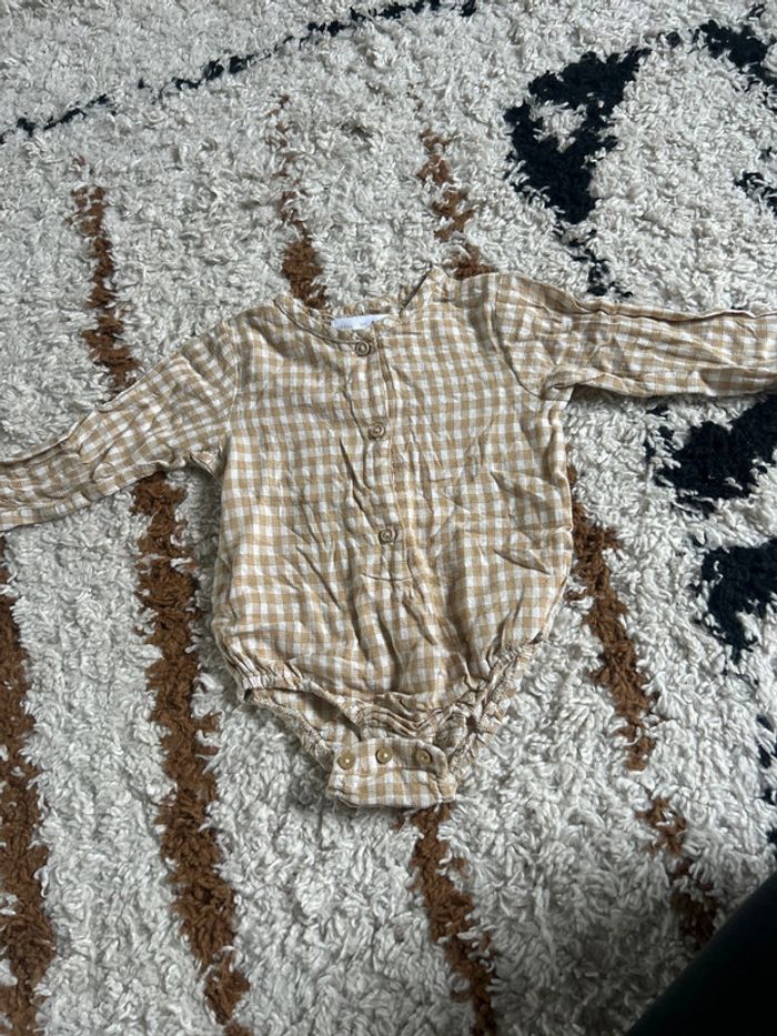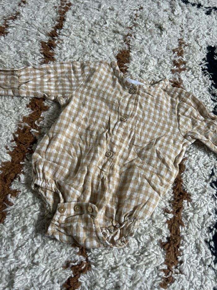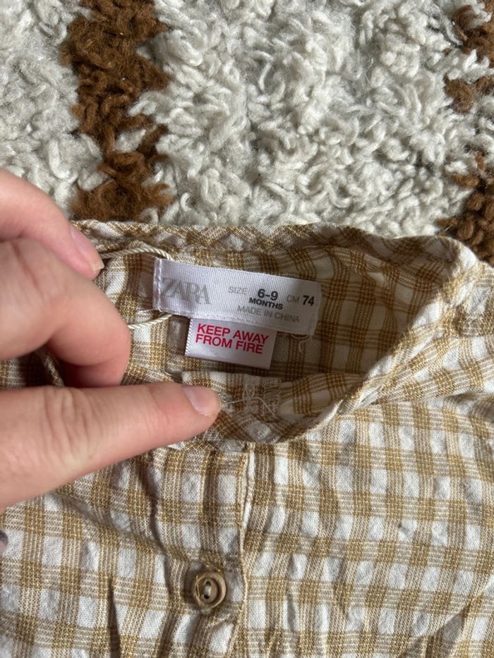 Barboteuse à carreaux légère bébé Couleur moutarde et beige Marque Zara Taille 6/9 mois Parfait état porté 1 fois