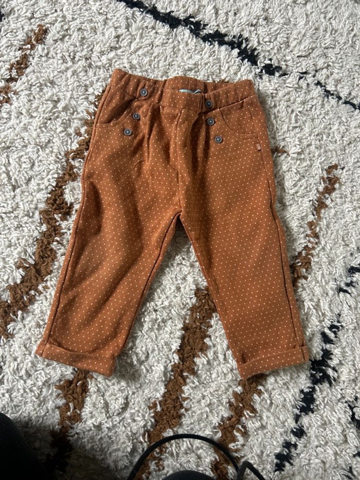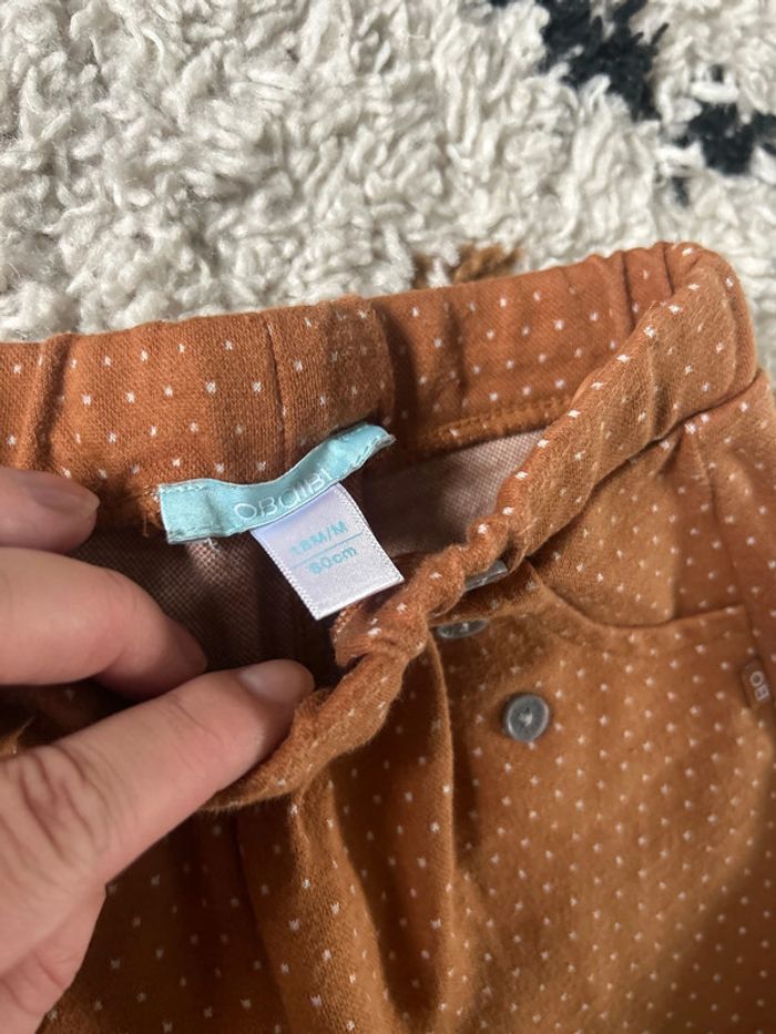 Pantalon matière élastique marron à point blanc Taille 18 mois Marque obaibi Parfait état porté une fois