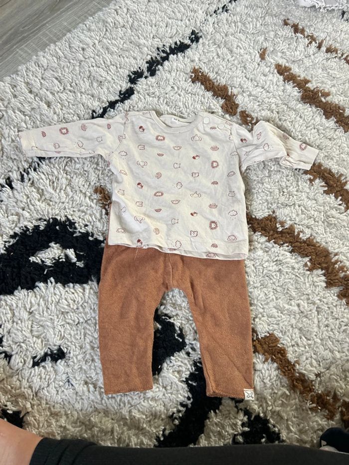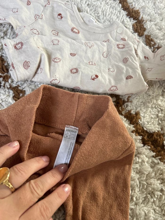 Ensemble teeshirt manche longue animaux + legging marron matière éponge Marque zeeman Taille 1-2 mois Neuf sans étiquette
