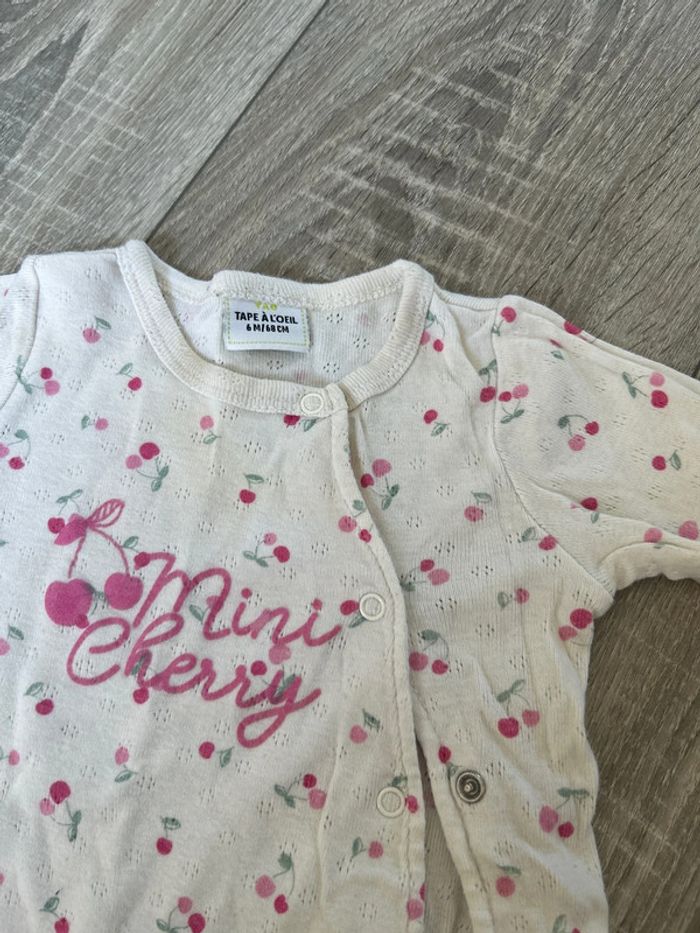 Pijama été blanc cerise rose Taille 6 mois Bon état