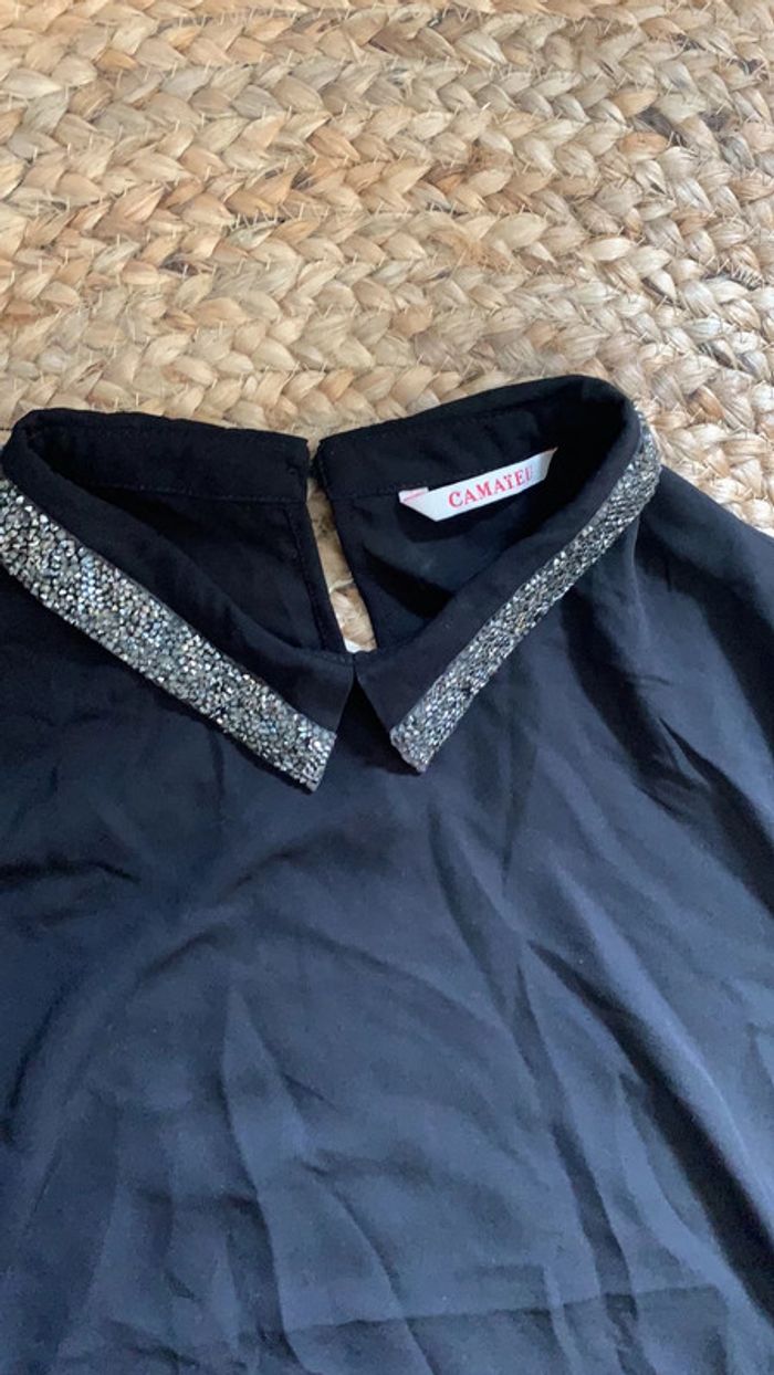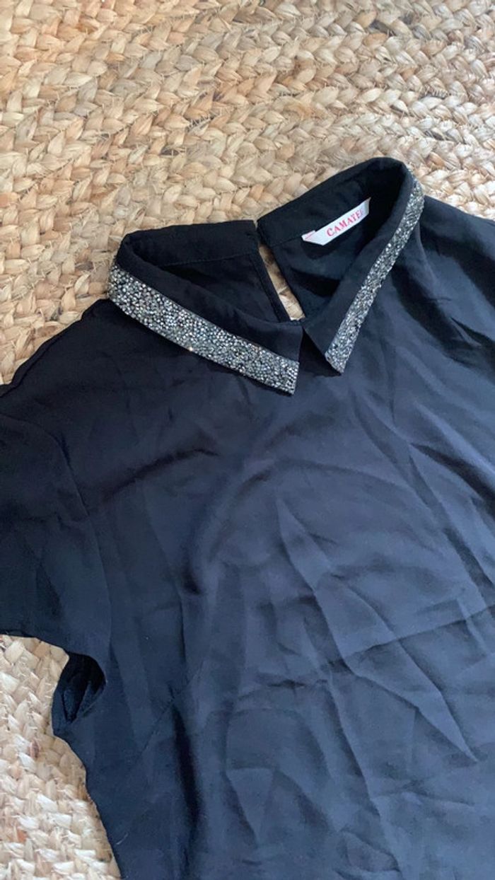 Teeshirt noir col en strass Parfait etat Marque camaïeu Taille 40 mais taille plus comme un 38