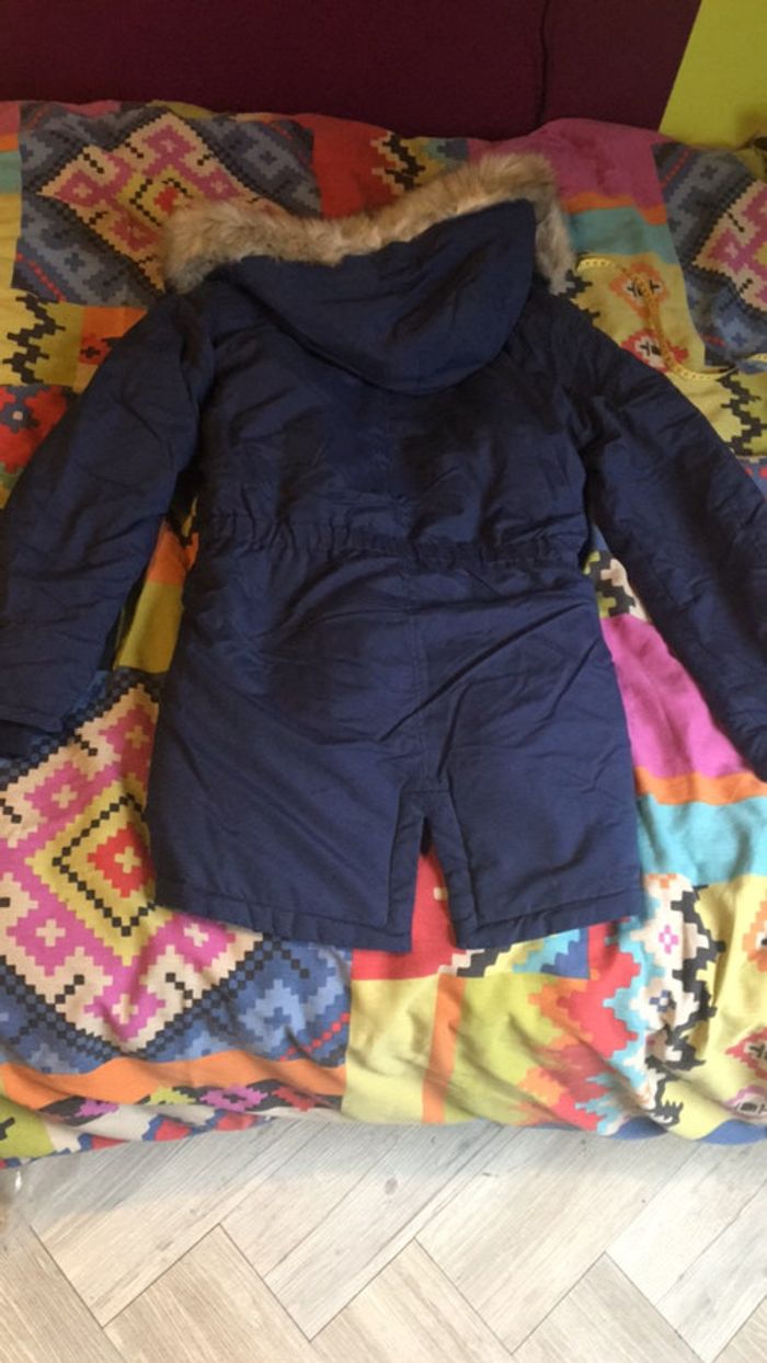 manteau chaud à capuche bleu marine intérieur moutarde neuf jamais porté
