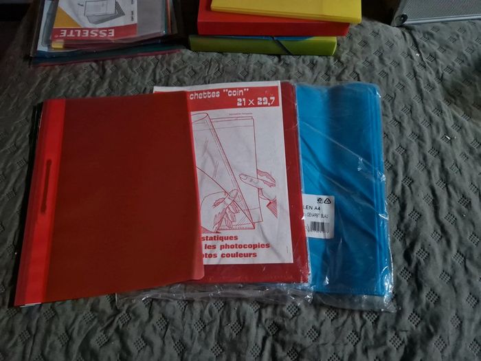 10 pochettes rouge 23 pochette bleue 3 chemises à lamelles #fourniturescolaire #fourniturescolaires #fournituredebureauneuf #scolaire #école #fournituresneuves #pochettesneuves