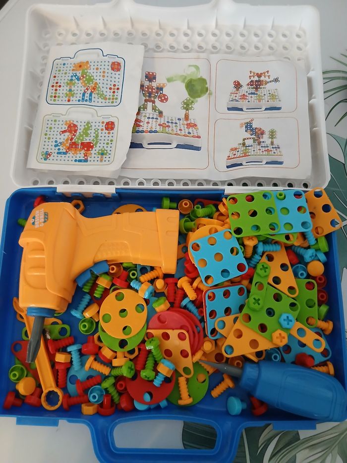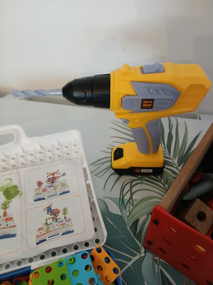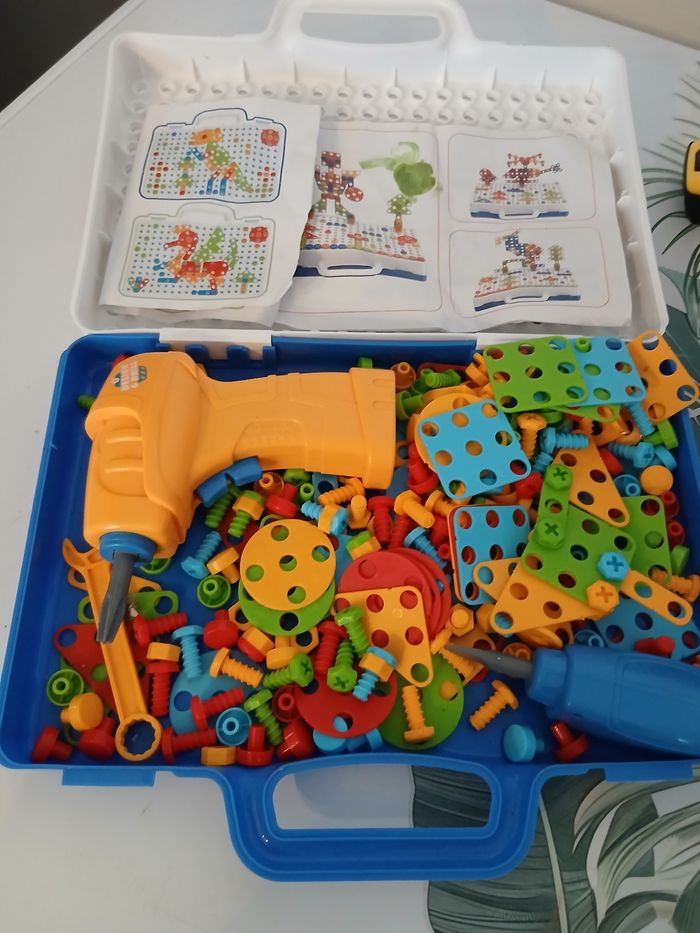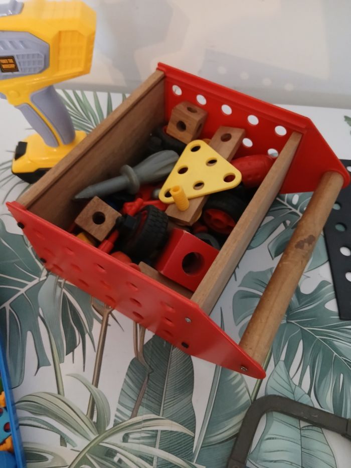 Lot de jouet bricolage. Bon état juste la valise bleu et blanche ne se ferme plus . La visseuse impeccable ont peut mètres des piles ds la batterie pour faire comme une vraie