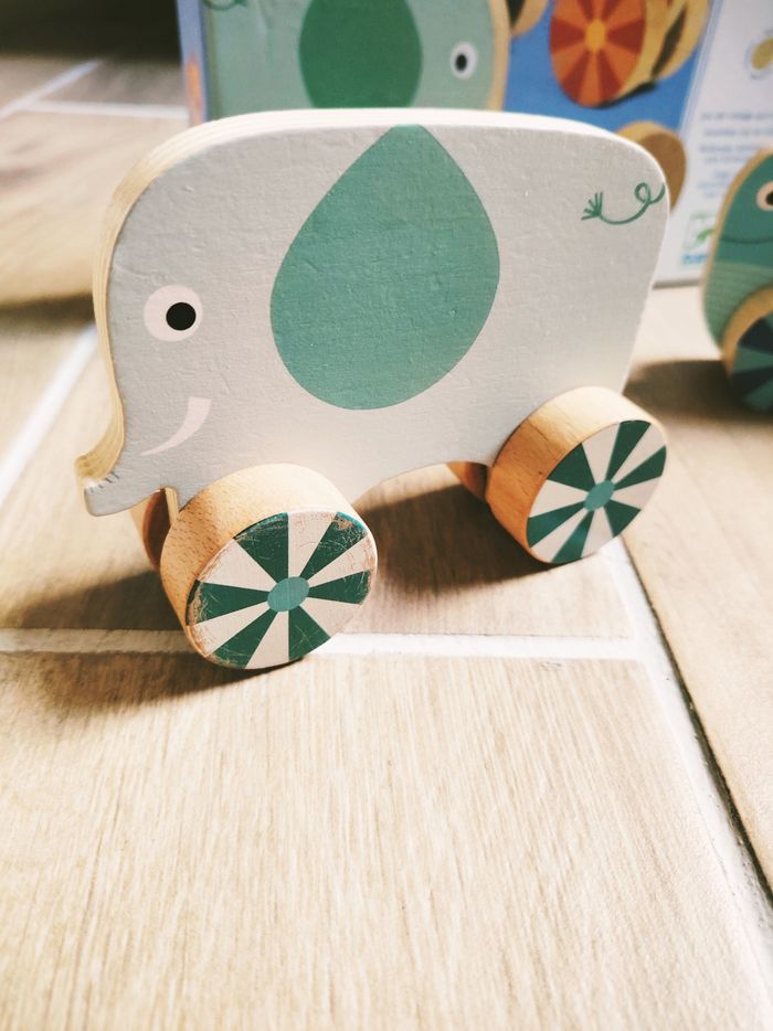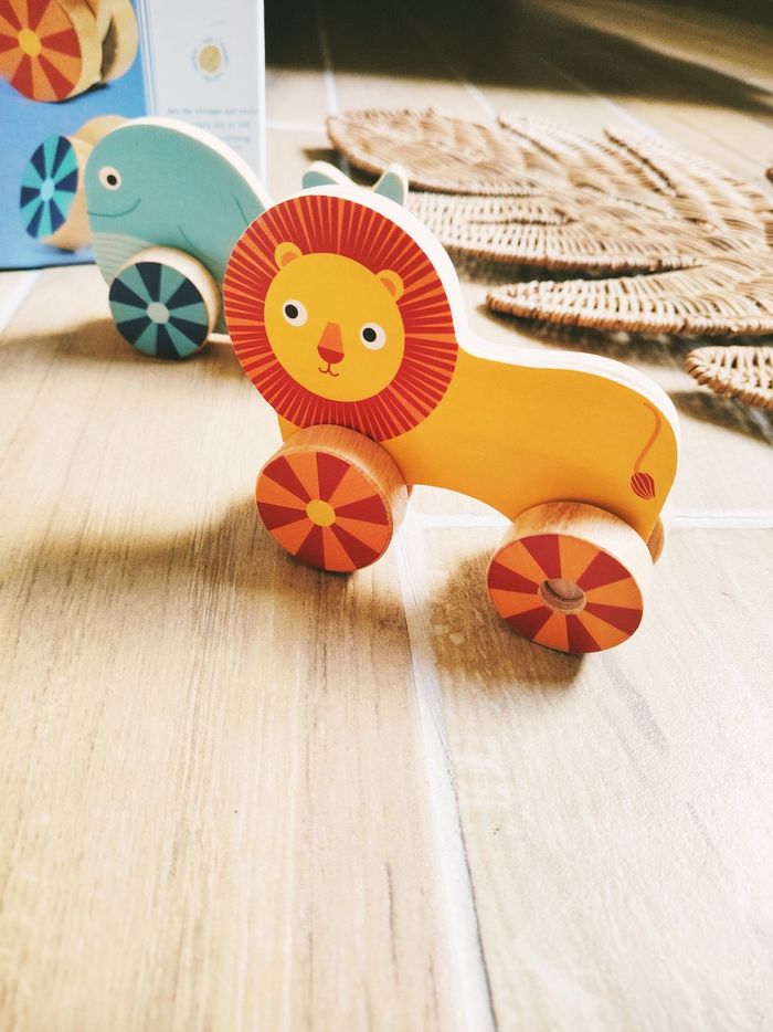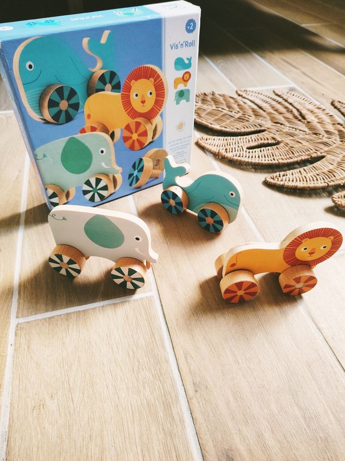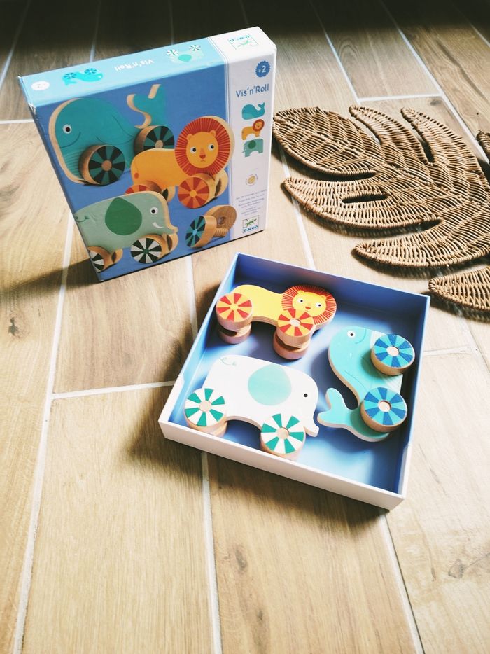 🦁 Vis'n'roll animaux à roues visser/dévisser en bois marque Djeco