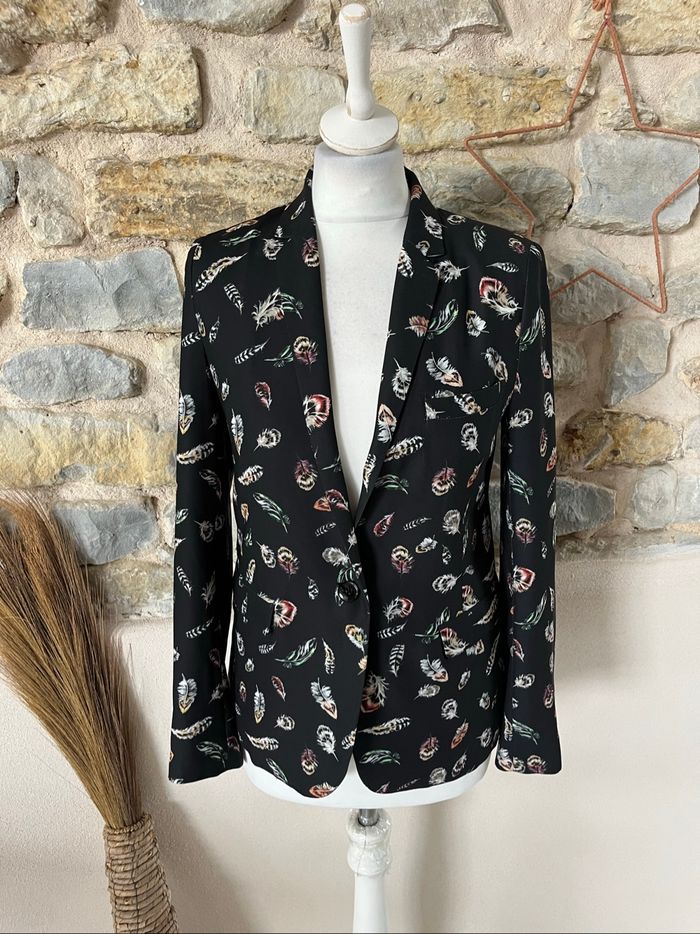 Vends joli blazer The Kooples Noir motif plumes Taille Xxs mais correspond à un XS