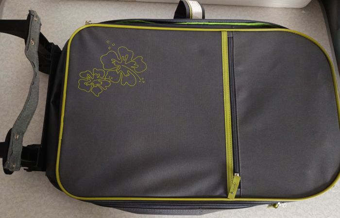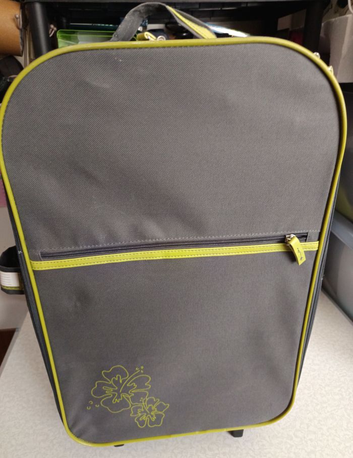 Jamais utilisé Valise Cabine extra légère souple pliable 2 roues 57x34x17 cm bras télescopique Rangement facile Etiquette nom