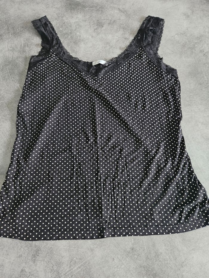 Top débardeur à bretelles en dentelle femme - XXL / 44 - Gémo - Noir à pois blanc - photo numéro 1