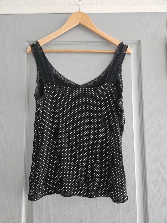 Top débardeur à bretelles en dentelle femme - XXL / 44 - Gémo - Noir à pois blanc - photo numéro 6