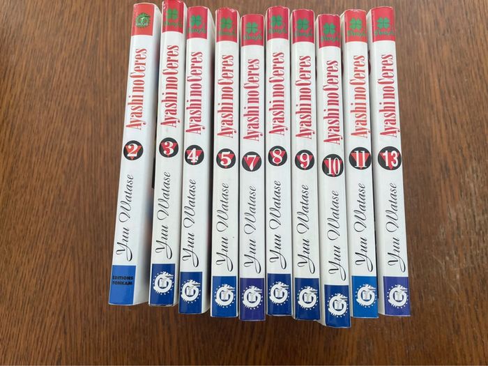 Lot de 10 manga Ayashi no Ceres Très bon état sauf le 2 voir photo et la couverture du 11 un peu pliée voir photo Lus une fois Tomes : 2,3,4,5,7,8,9,10,11 et 13