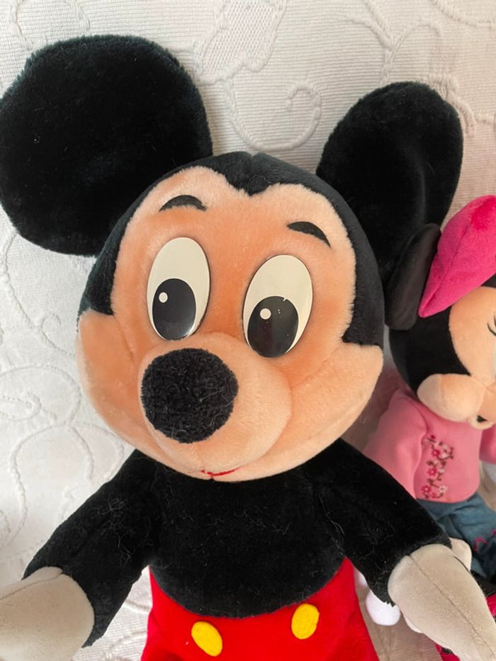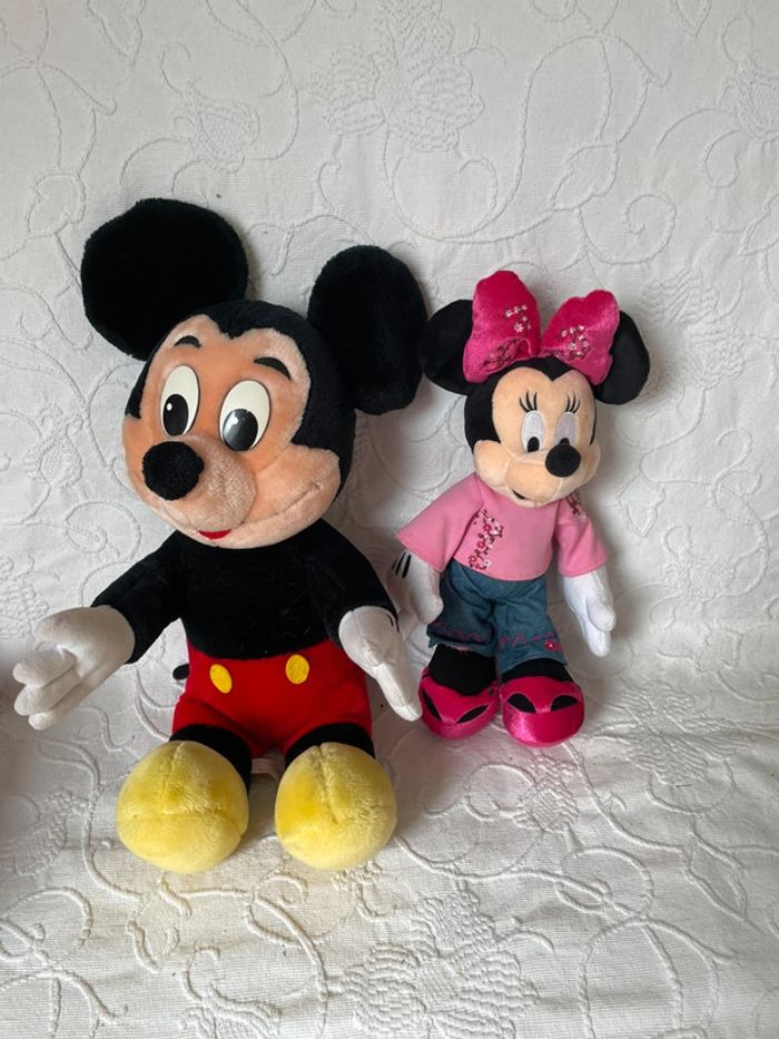 Lot de deux peluches Mickey et Minnie Mickey acheté à Disneyland Les mains de Mickey ont peut être besoin d’un petit nettoyage voir photos À partir de 12 mois