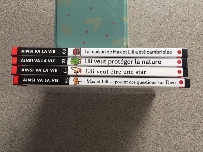 4 Livres Lili et Max comme Neufs Lili veut être une star Max et Lili se posent des questions sur Dieu La maison de Max et Lili a été cambriolée Lili veut protéger la nature Des livres très bien écrits avec des mots pour expliquer les choses de la vie Pas toujours facile pour les adultes de trouver les mots Vous trouverez le résumé du livre en photo Pages ni cornées ni pliées ni scotchées ni gribouillées D’autres titres dans ma boutique