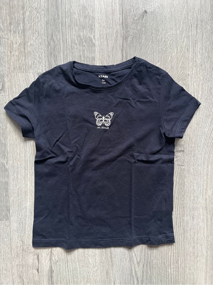 T shirt à manches courtes bleu marine motif papillon fille Taille 5 ans (Kiabi) Neuf sans étiquette. Jamais porté.