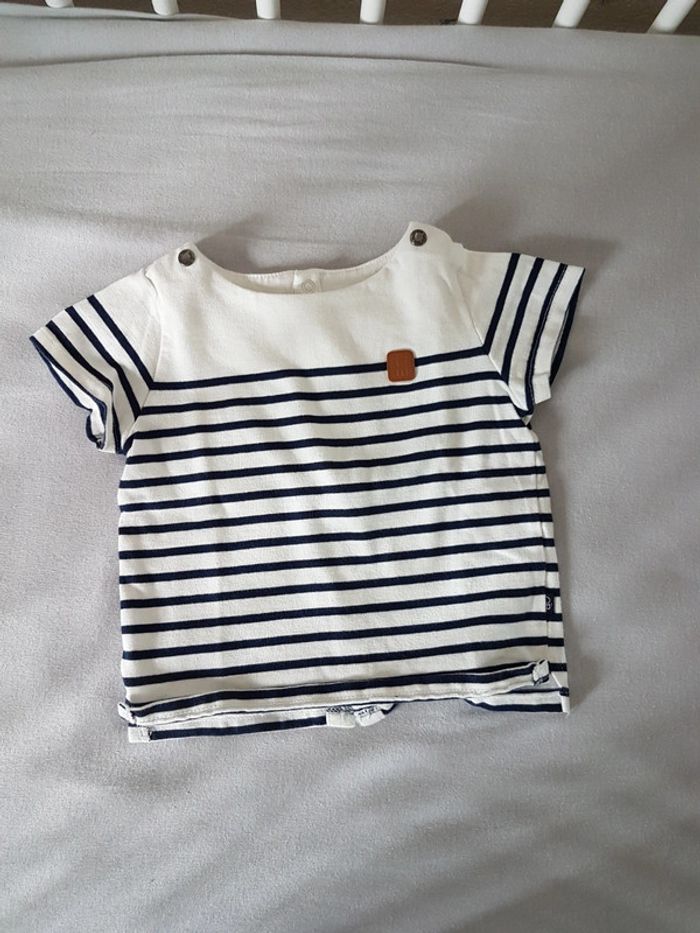 T shirt rayé bleu manche coute Marque Obaibi 6 mois