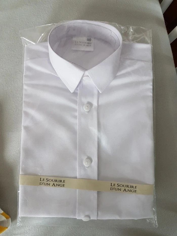 Chemise les sourires d anges blanche achetée pour baptême par avance Neuve dans son emballage d'origine