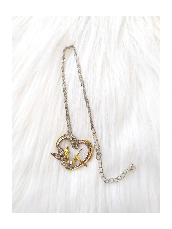 Collier chaîne métal argenté torsadé pendentif cœur doré argenté strass fée clochette - photo numéro 1
