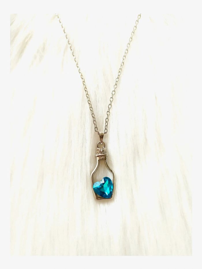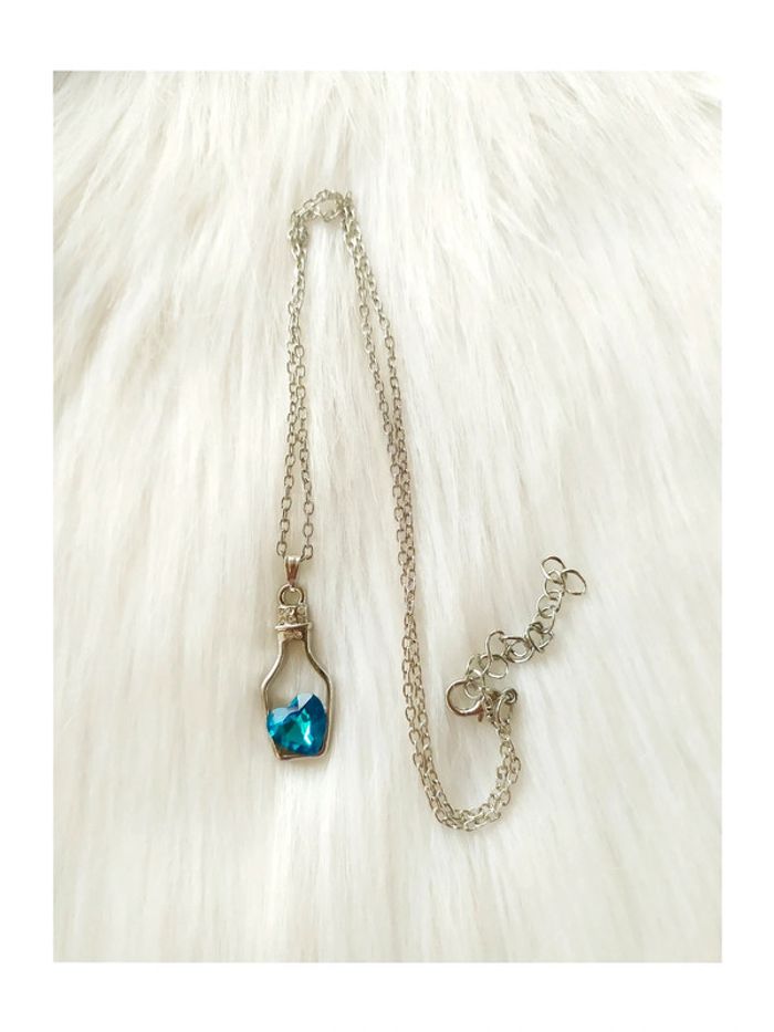 Collier flacon pendentif cœur bleu cristal chaîne argentée réglable romantique - photo numéro 1