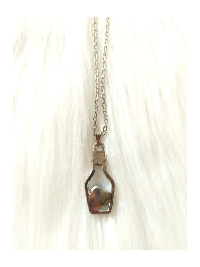 Collier flacon pendentif cœur bleu cristal chaîne argentée réglable romantique - photo numéro 3