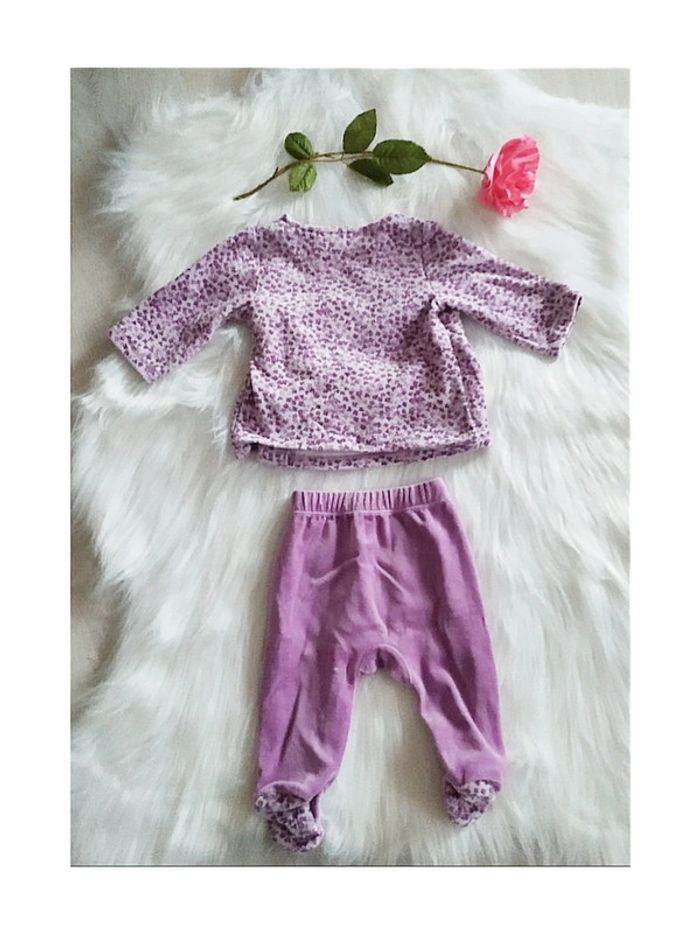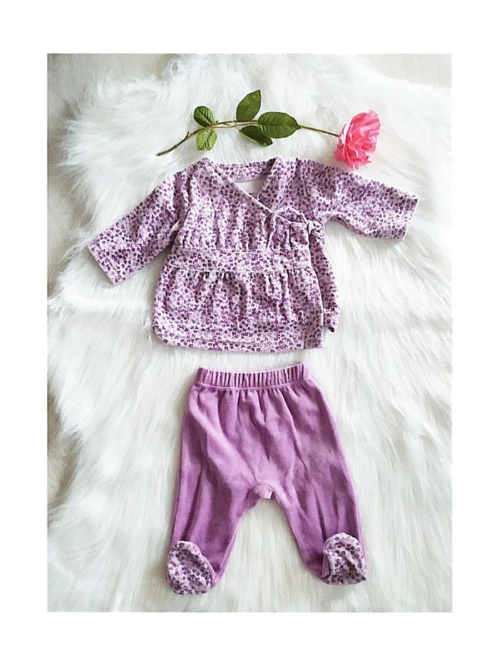 🇬🇧 Baby girl 2-piece velour pyjama 3 months, liberty floral wrap top and footed pants
