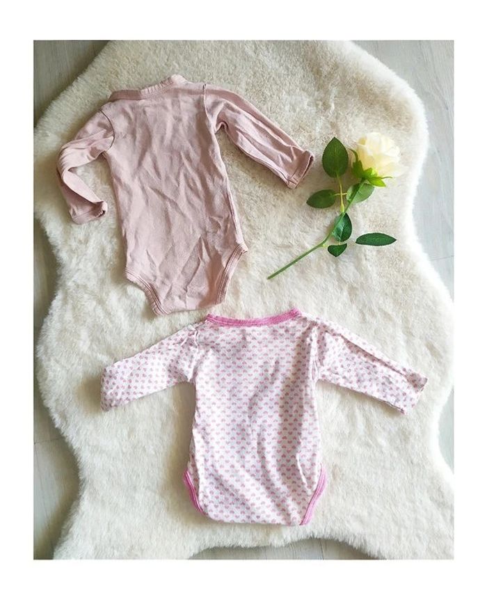 Lot 2 bodys cache-cœur naissance manches longues coton fille vieux rose blanc cœurs - photo numéro 2
