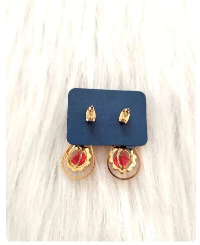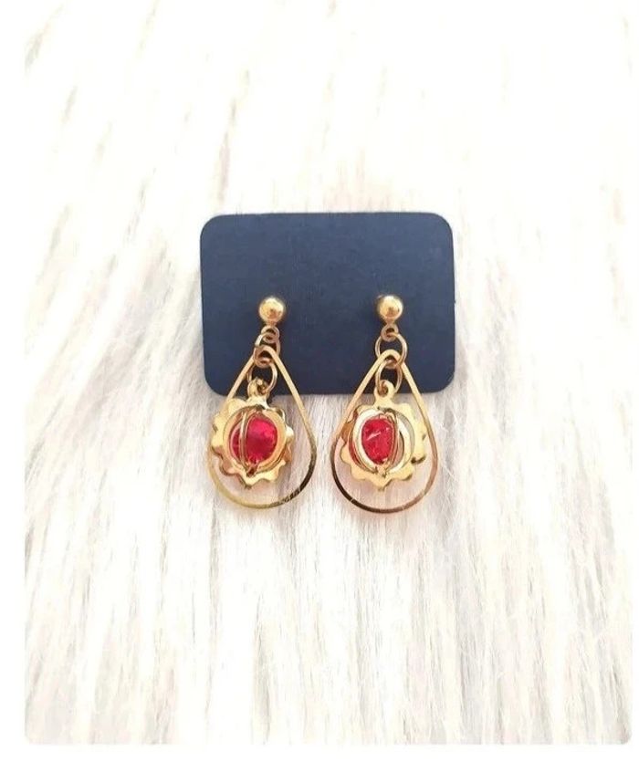 Boucles d’oreilles métal forme goutte d’eau avec perle rouge pendante chic - photo numéro 2