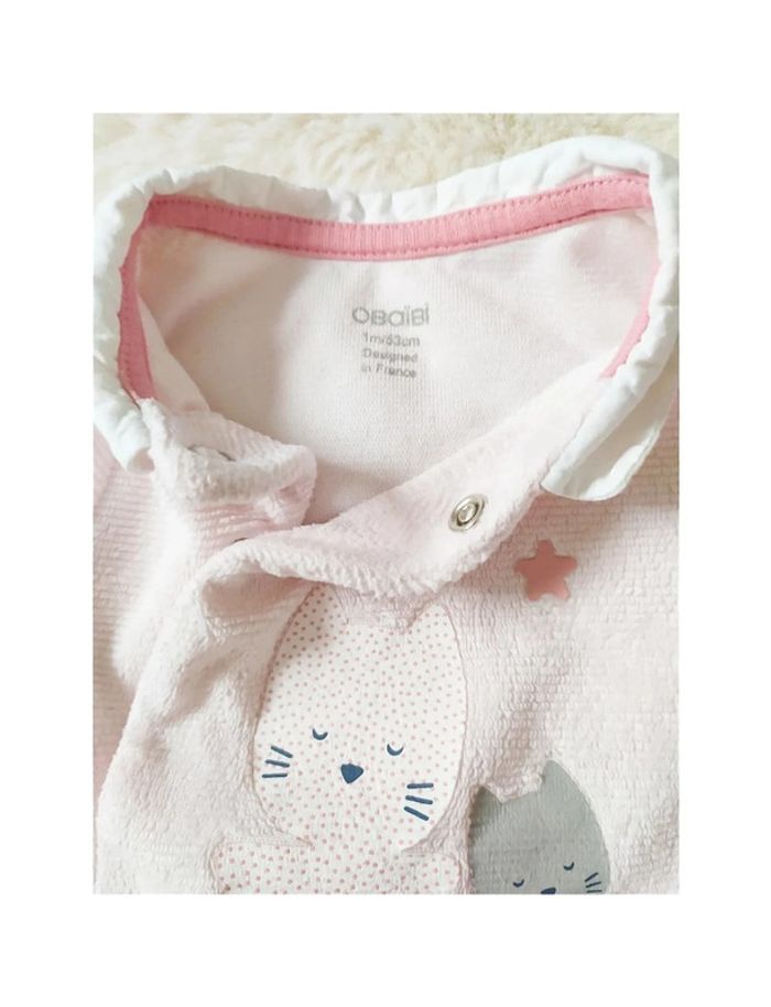 Pyjama fille en velours ouverture pressions devant motif chat 1 mois = 53 cm - photo numéro 3