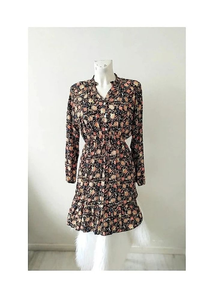 #vklrobes Robe à manches longues col chemise à boutons évasée imprimé fleurs esprit vintage années 70 Largeur aisselles à plat 41 cm. Largeur à plat à l'élastique 27-42 cm. Longueur 90 cm. Peut convenir pour une taille 38 ou une taille 40 En tissu sergé aspect coton, 100% polyester. Neuve jamais portée. 🌺🌺 Long-sleeved flare dress with buttoned shirt collar and flower print in vintage 70s style boho chic hippie Langärmliges Kleid mit Hemdkragen, ausgestellten Knöpfen und Blumendruck im Retro-Vintage-Boho-Stil der 70er Jahre