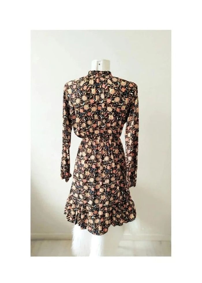 Robe manches longues col chemise à boutons évasée imprimé fleurs esprit rétro vintage années 70 boho - photo numéro 2