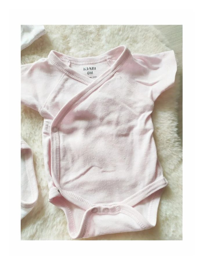 #vkl0mois Lot de 3 bodys bébé fille nouveau-né taille naissance 1 body manches longues Tex 1 body manches courtes Kiabi 1 body manches longues Natalys 🌺 Set of 3 newborn baby girl bodysuits, birth size Set mit 3 Bodys für Neugeborene und Mädchen, Geburtsgröße