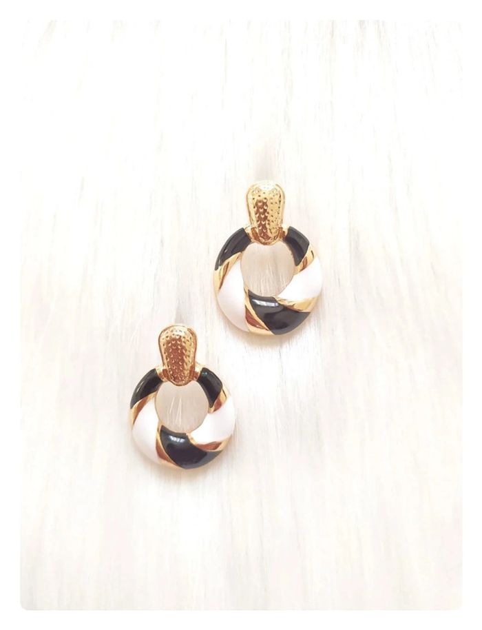 #vklbijoux Boucles d'oreilles anneaux en métal cloisonné style vintage rétro chic Longueur depuis la tige 2,5 cm. Largeur 2 cm. Neuves. 🌺 Retro chic cloisonné metal hoop earrings Retro-schicke Cloisonné-Creolen aus Metall
