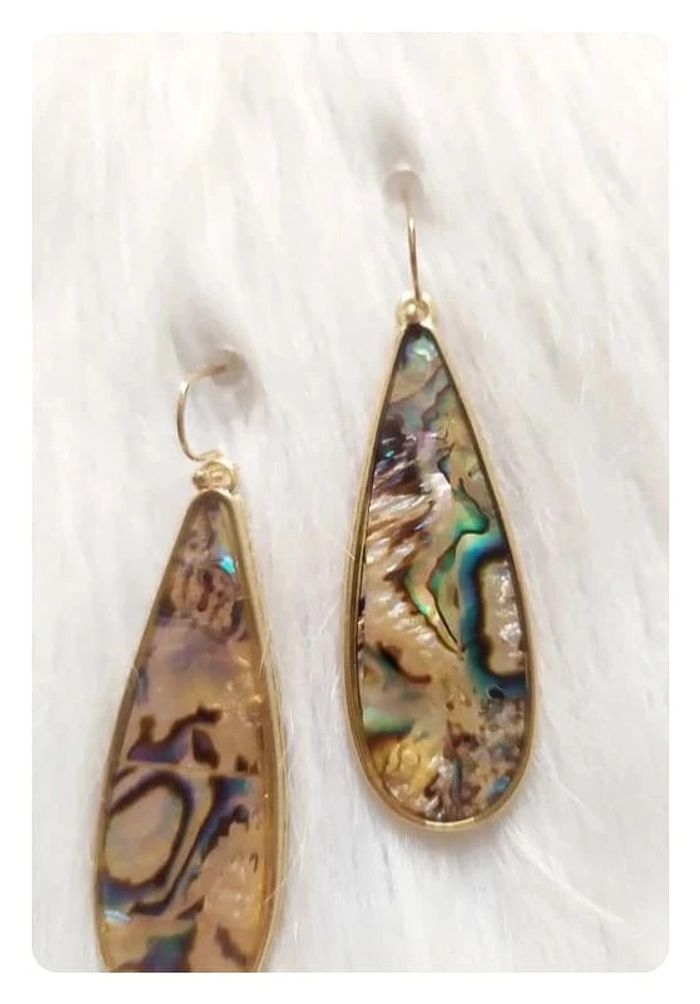 Boucles d'oreilles fantaisie pendantes ovales aspect nacre à reflets