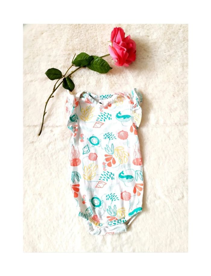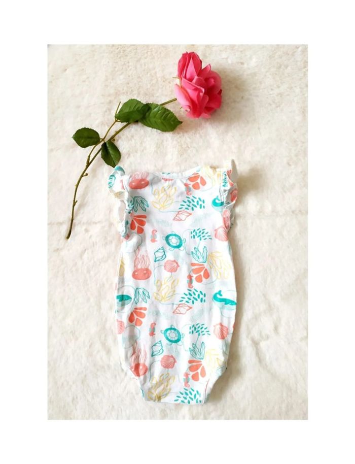 #vkl3mois Body été fille manches volantées motifs marins 3 mois 🌺 Girl summer bodysuit with ruffled sleeves and marine patterns, 3 months Sommer-Body für Mädchen mit Rüschenärmeln und Meeresmuster, 3 Monate