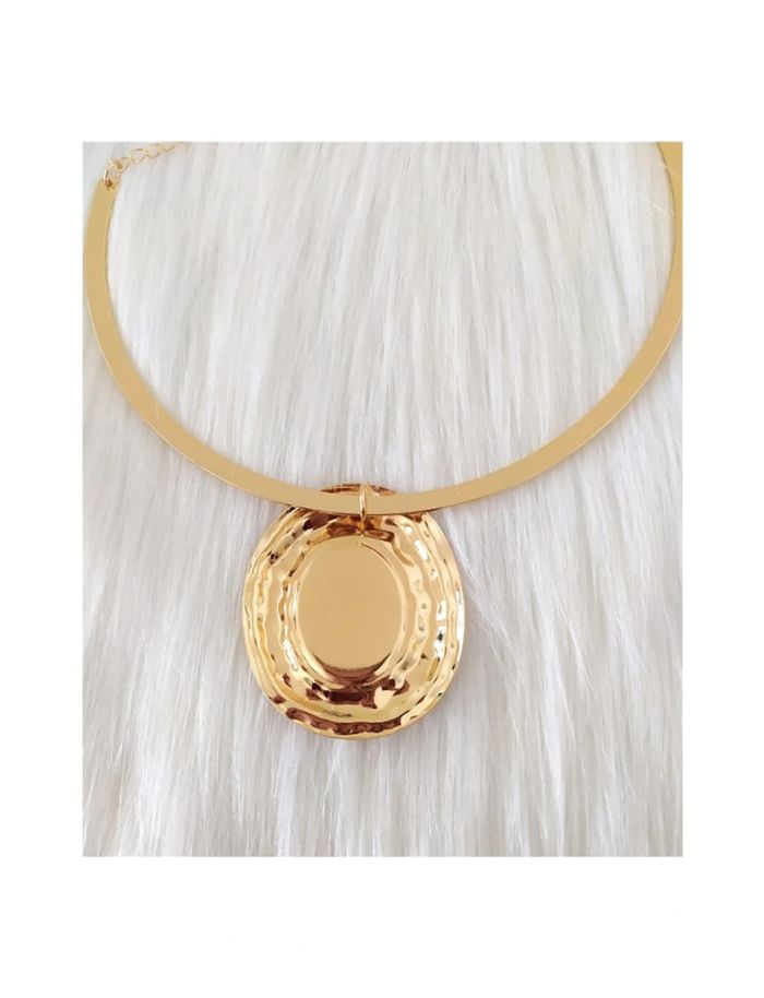Collier ras du cou en métal rigide avec pendentif médaillon camée style néo vintage - photo numéro 1
