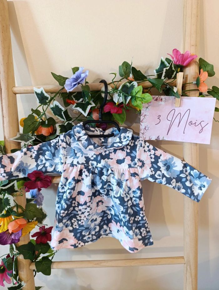 ✨ Dressing trier dans " à propos" 🌺 Taille : 3 mois 🌺 Tunique manche longue fleurie avec col claudine #deborahcog_3moisfille