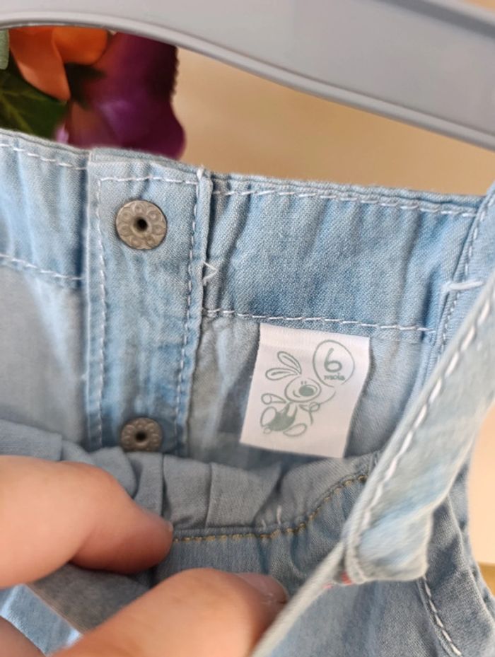 ✨ Dressing trier dans " à propos" 🌺 Taille : 6 mois 🌺 Combishort couleur jean claire, légère à bretelles #deborahcog_6moisfille