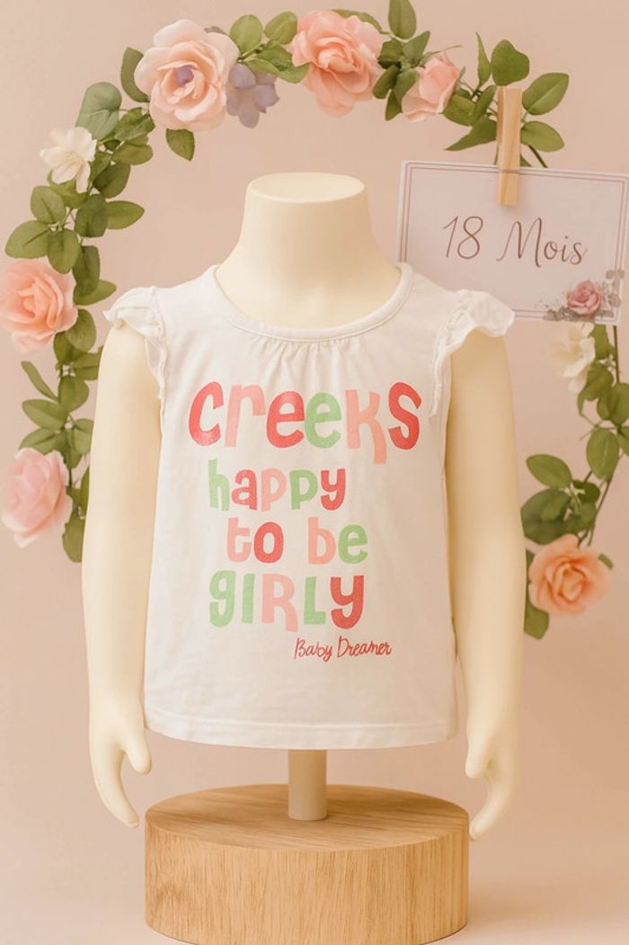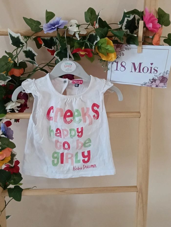 ✨ Dressing trier dans " à propos" 🌺 Marque : Creeks 🌺 Taille : 18 mois 🌺 T-shirt manche courte blanc avec écriture ⚠️Ce fier au détail et à la couleur exacte a partir de la photo 2 #deborahcog_18moisfille