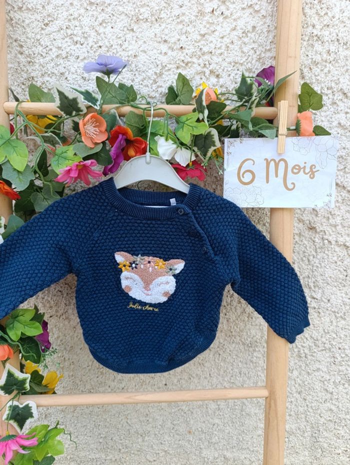 ✨ Dressing trier dans " à propos" 🌺 Marque : Mes petits cailloux 🌺 Taille : 6 mois 🌺 Pull bleu marine motif biche #deborahcog_6moisfille