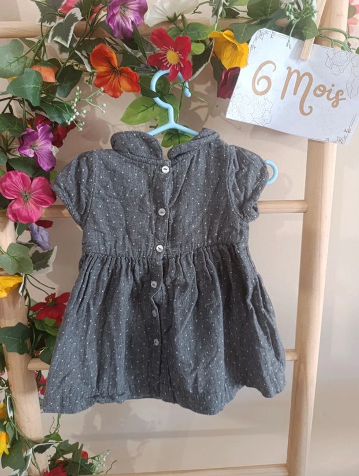 ✨ Dressing trier dans " à propos" 📩 Possible d'activer Chronopost pour ce qui le souhaitent, ne pas hésitez a demander pour que je l'active 🌺 Marque : Jacadi 🌺 Taille : 6 mois 🌺 La robe présentée est une robe pour bébé fille de 6 mois, de couleur gris charbon avec de petits pois blancs discrets répartis sur toute la surface. Elle a : Un col Claudine arrondi, apportant une touche élégante et rétro. Des manches courtes légèrement bouffantes, soulignant son style délicat. Une taille froncée qui donne du volume à la jupe, créant un effet évasé charmant. Un tissu léger, confortable pour un bébé. #deborahcog_6moisfille