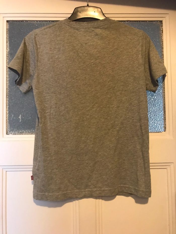 Nous vendons un t-shirt de la marque Levi’s (Levis)en taille 12ans (152cm) couleur gris, imprimé devant.