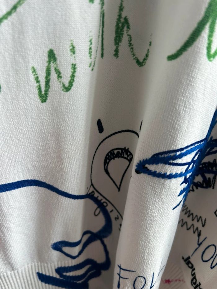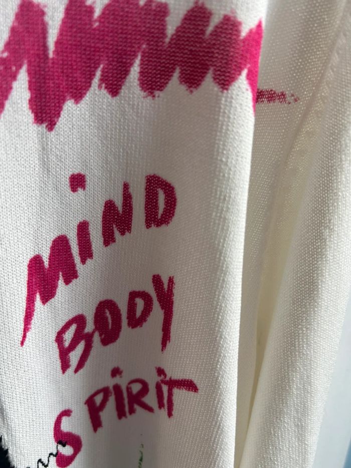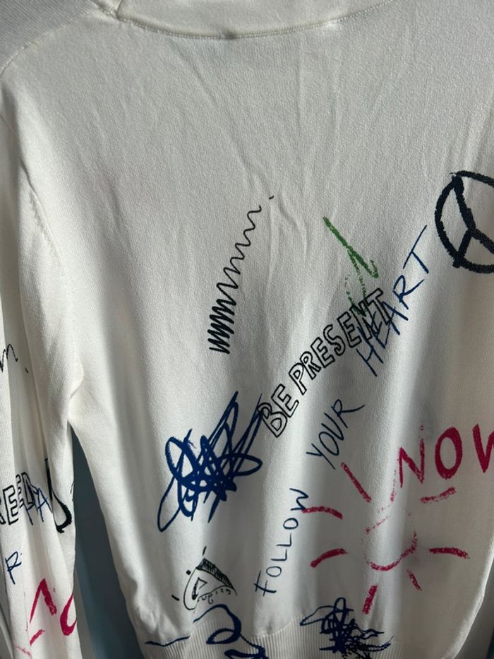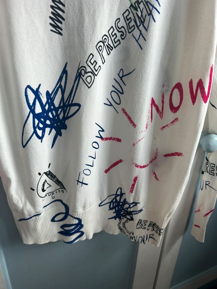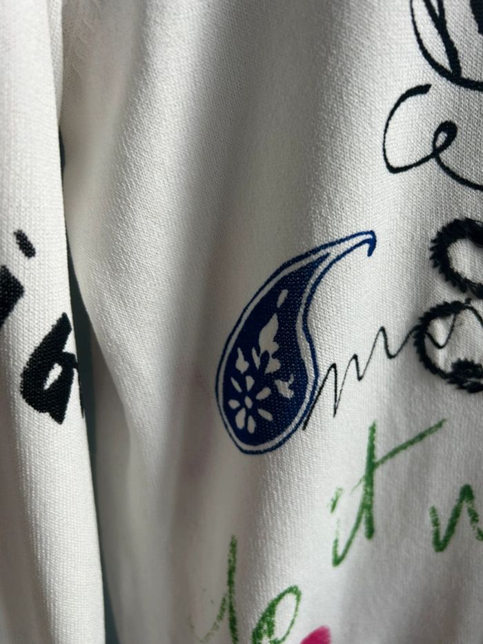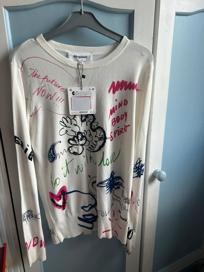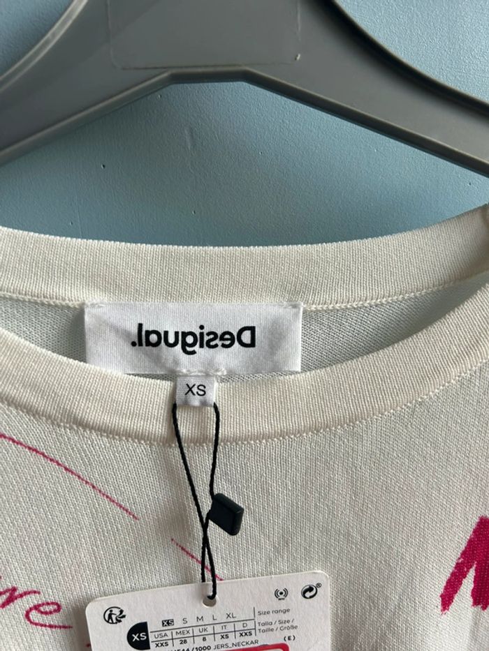 Pull fin desigual , blanc, avec inscription multicolore, neuf avec étiquette, XS #aurore90pull #desigual #neufavecetiquette