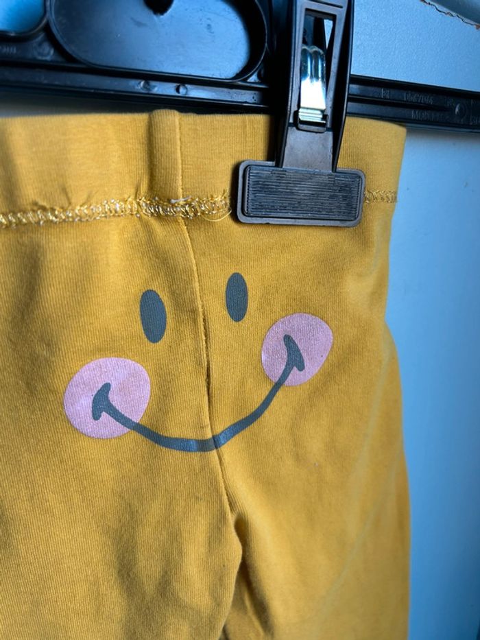 Legging jaune , motif smiley, collection smiley baby , orchestra, 9 mois , très bon état #aurore90bebefille9mois #legging