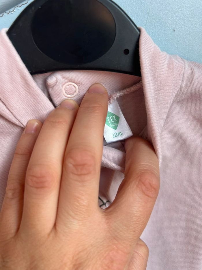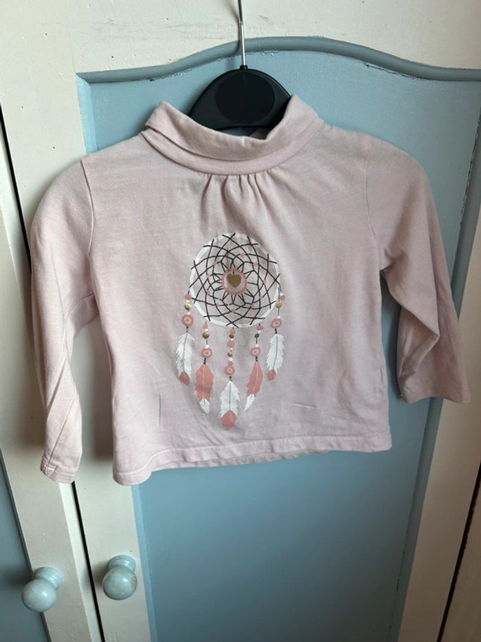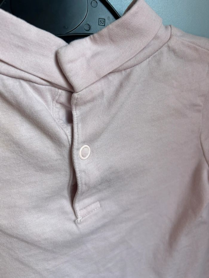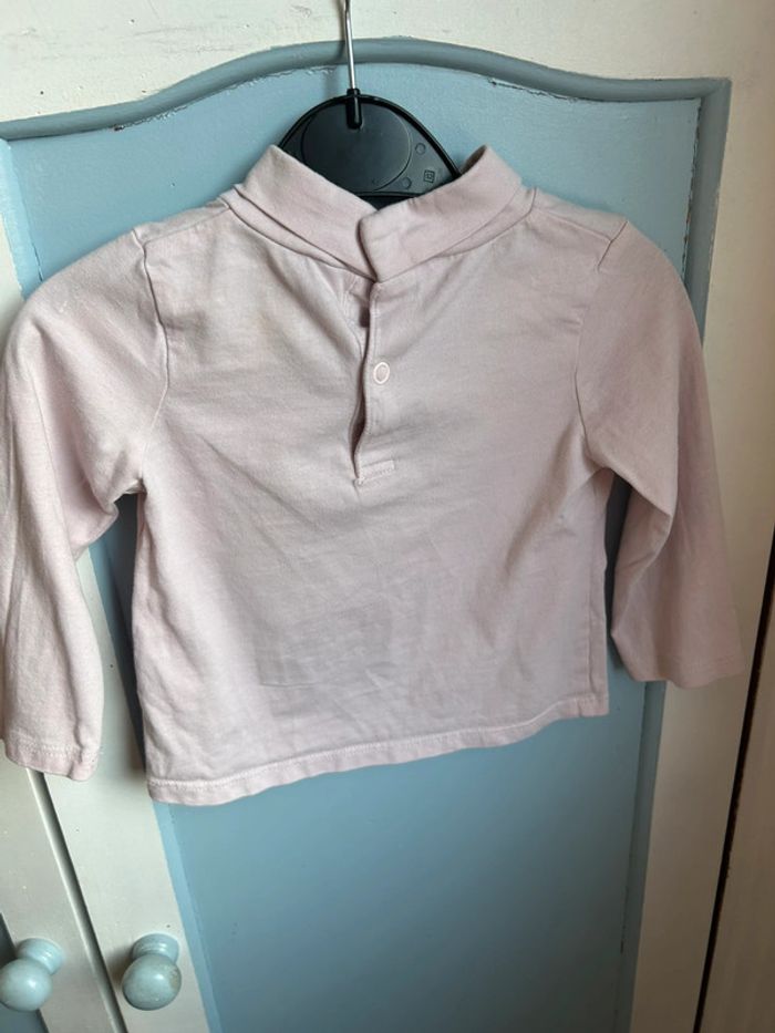 Haut rose à col roulé , tex baby, 12 mois