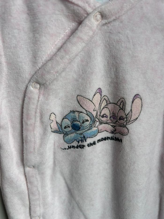 Pyjama stitch, rose , 6 mois , ouverture devant et entre les jambes , par pressions , très bon état #aurore90bebefille6mois #pyjama