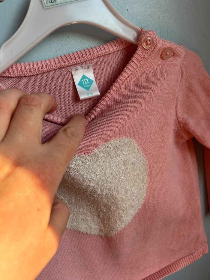 Pull rose cœur blanc, 9 mois - photo numéro 3
