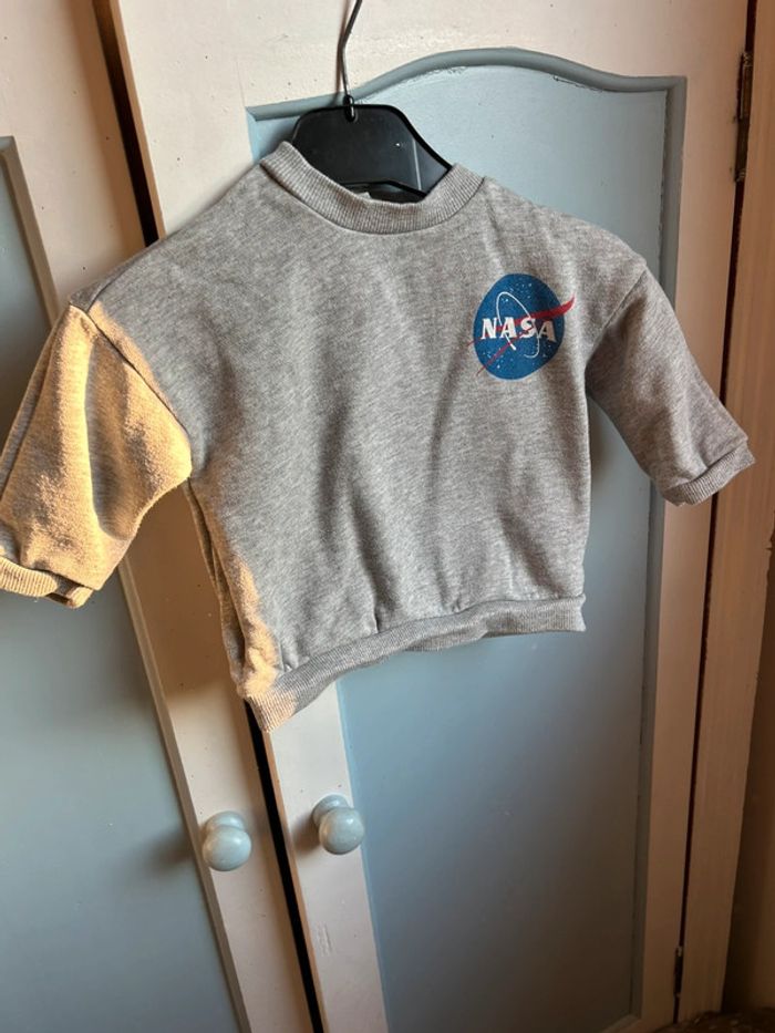 Sweat shirt gris , nasa, molletonné , très bon état , 4-6 mois , H&M, mixte #aurore90bebe6mois #nasa