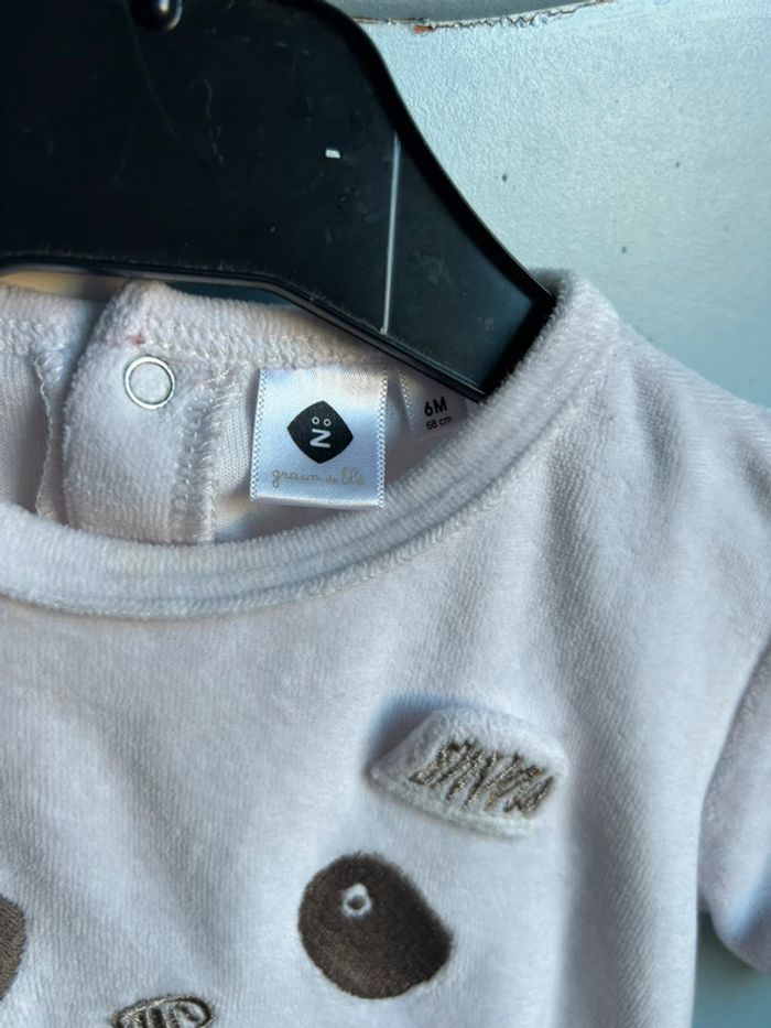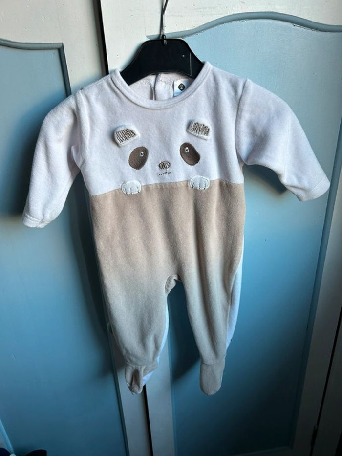 Pyjama velours , 1 pièce, fermeture dans le dos par pressions , motif panda, 6 mois , grain de blé , très bon état , mixte #aurore90bebefille6mois #aurore90bebe6mois #pyjamahiver